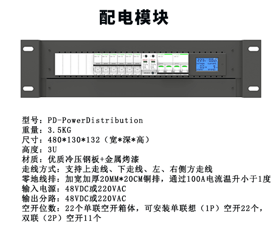 無空調系統,內置配電模塊、UPS電源(3KVA/6KVA可選)、前后網孔門